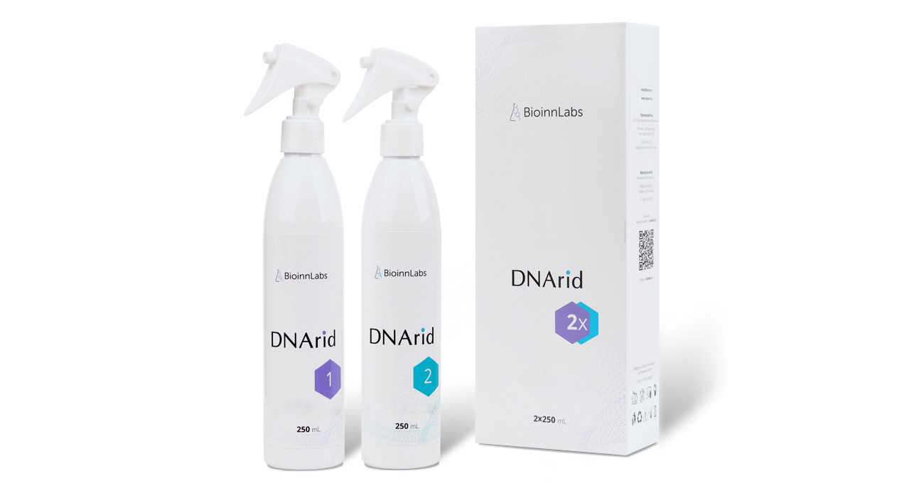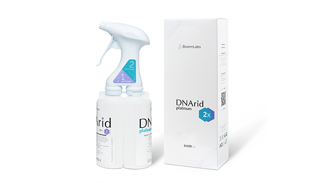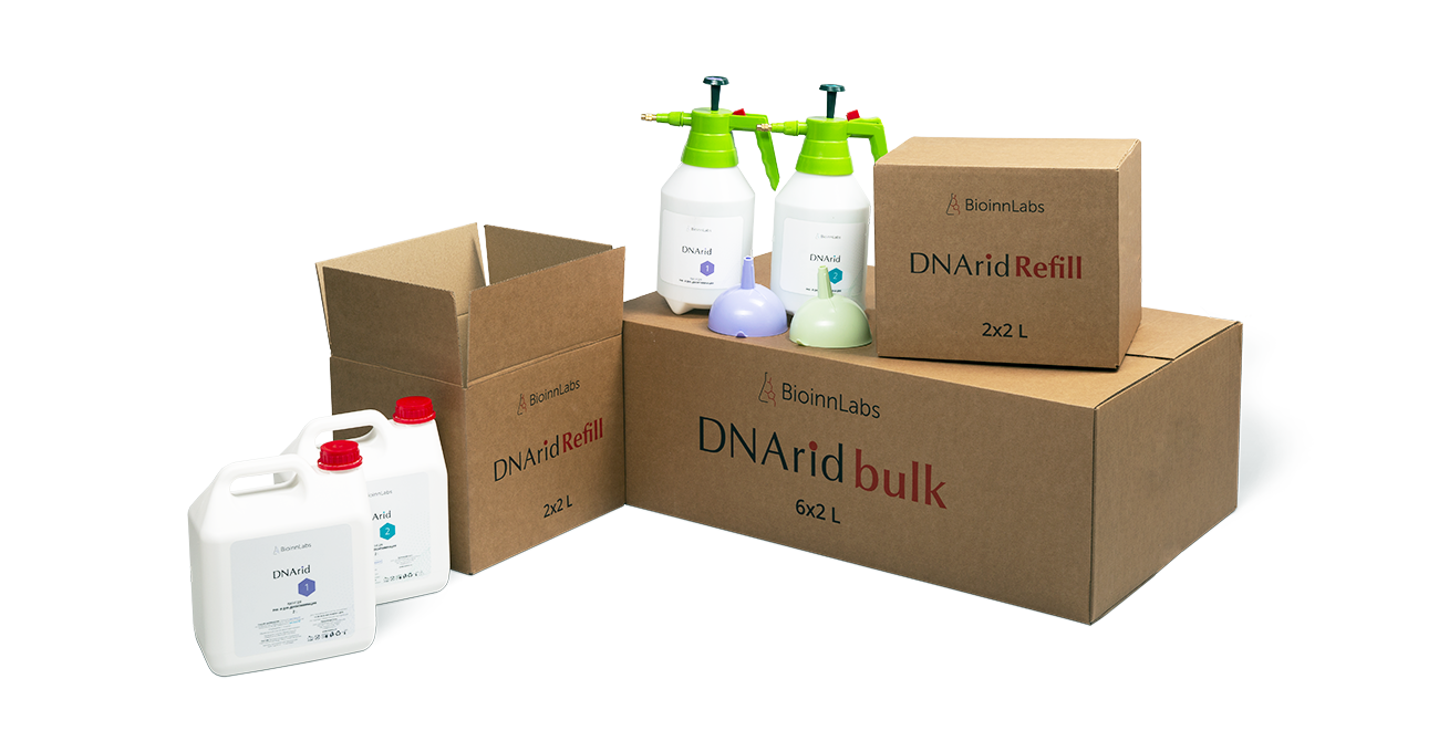 Ein zweiteiliges Mittel zur RNA /DNA-Dekontamination von Geräten, Arbeitsflächen, Kleidung und Handhaut.